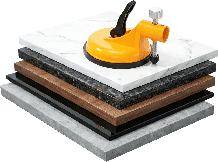 A: Yes. The high-strength alloy and powerful suction easily handle large-format tiles and heavy glass.